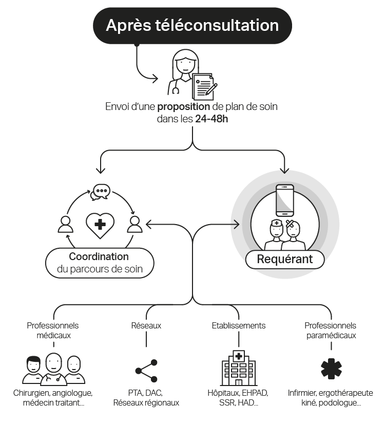 A l'issue de votre rendez-vous un compte-rendu (proposition de plan de soins) sera envoyé aux professionnels de santé concernés par la plaie du patient (médecin traitant, infirmier(e), angiologue...) par messagerie sécurisée de santé.